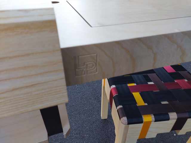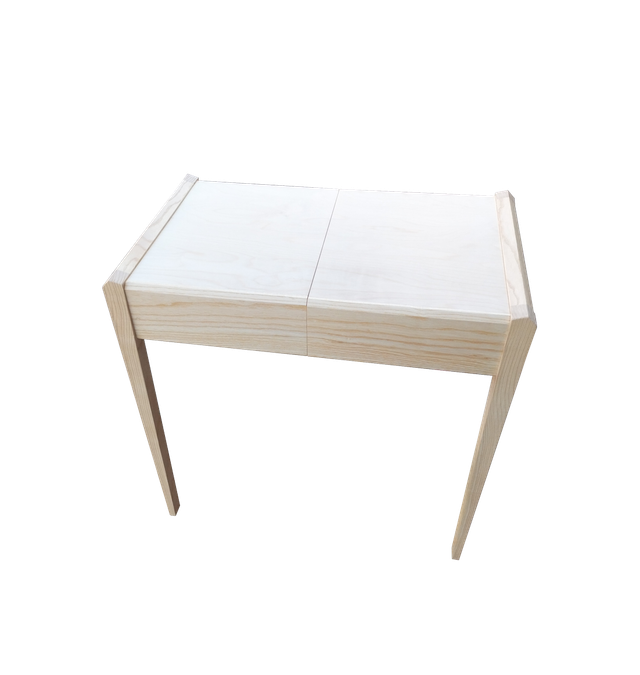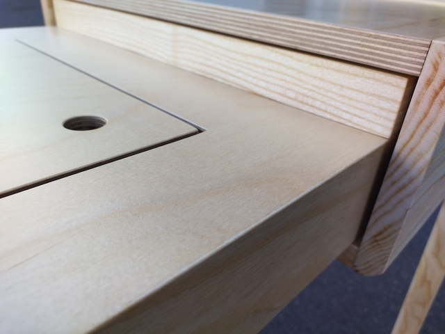 Console extensible adaptable en bureau. Frêne massif et Contre-plaqué bouleau brossés, vitrification Hydro Mat.