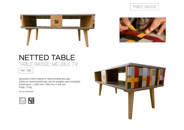 Valchromat gris clair, chêne massif et Sangles en Nylon multicolores